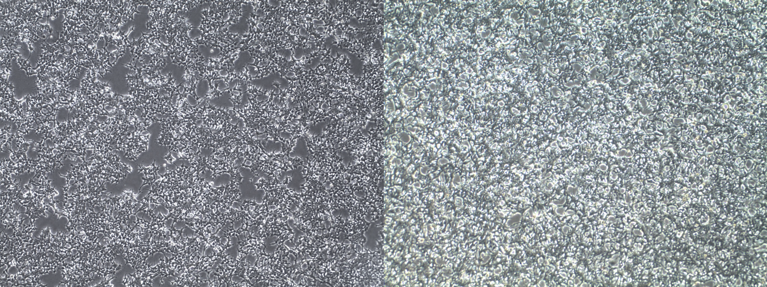 <figure><img src="https://3501342446-files.gitbook.io/~/files/v0/b/gitbook-x-prod.appspot.com/o/spaces%2FMPFcS0nUQ9NEdTzG2uLL%2Fuploads%2Fp4QzBhJf9pc4VIogFCXn%2FA549.jpg?alt=media&#x26;token=776bee48-044d-4d34-a314-9ef964988ac2" alt=""><figcaption><p>A-549, low density (좌) / high density (우) from <a href="https://www.atcc.org/products/ccl-185">ATCC</a></p></figcaption></figure>